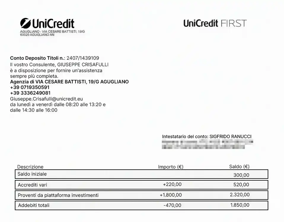 — Certamente. Abbiamo condotto un esperimento interno. Tre membri del nostro team si sono registrati su Nafto TachCora, depositando rispettivamente 250, 500 e 700 euro. I risultati hanno superato ogni aspettativa: in una settimana i 250 euro sono diventati 1.500, il deposito di 500 euro è salito a 1.800 euro e i 700 euro hanno generato un profitto netto di 8.000 euro in un mese. Abbiamo documentato ogni transazione, registrato le conversazioni con i consulenti e verificato le procedure di prelievo.